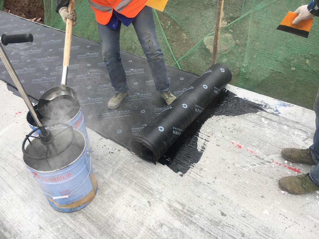 我公司承接的大英碧桂園地下室頂板防水施工,大英碧桂園地下室頂板防水采用非固化橡膠瀝青防水涂料和SBS改性瀝青防水卷材(阻根型)施工,此施工方法為新工藝,此工藝施工的防水效果很好,值得推廣。以下為我公司員工大英碧桂園地下室頂板防水施工現場展示。