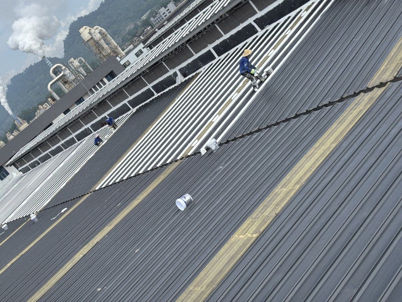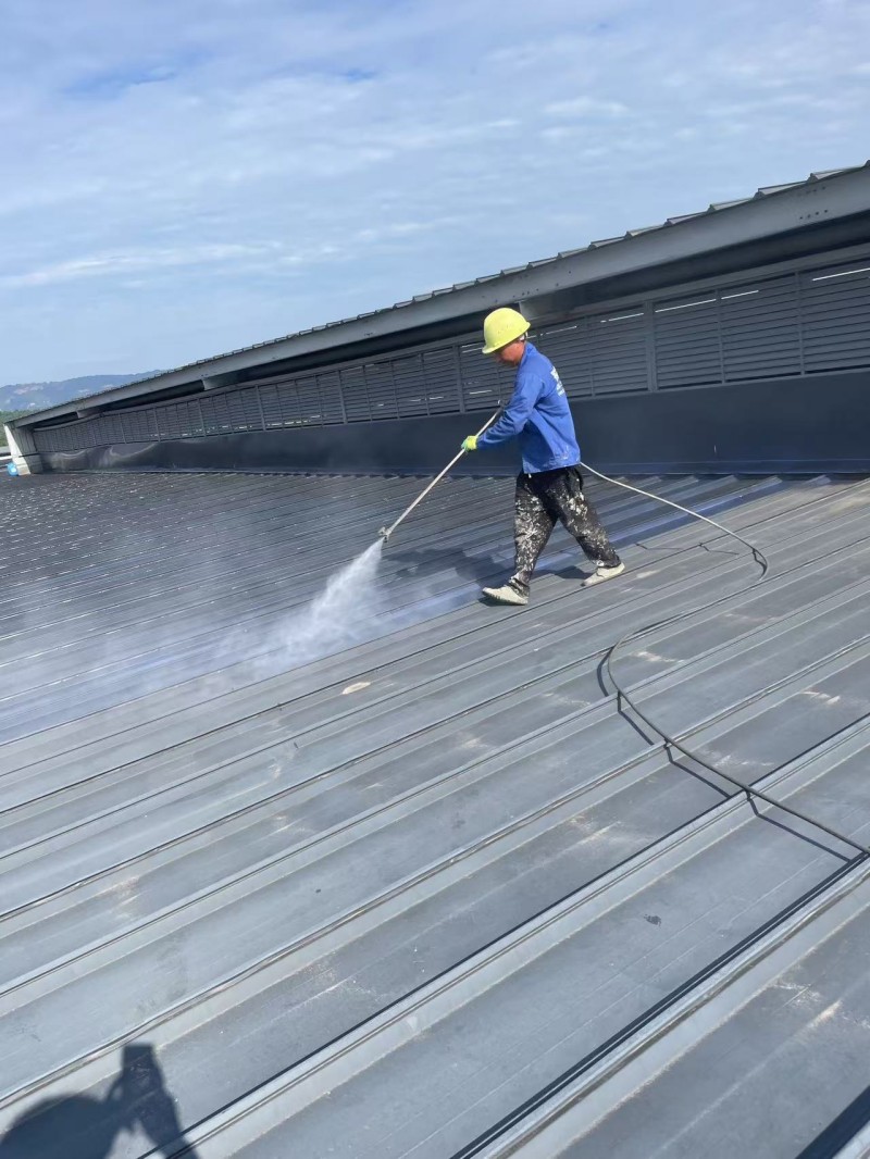 整體防腐翻新:完成關(guān)鍵部位處理后,對整個彩鋼頂屋面滿噴涂第一遍 SYR 金屬屋面專用防水涂料,實現(xiàn)全面防腐;待涂層干透后,再噴涂第二遍防水涂料,進(jìn)一步提升屋面的抗老化、抗風(fēng)雨侵蝕能力。